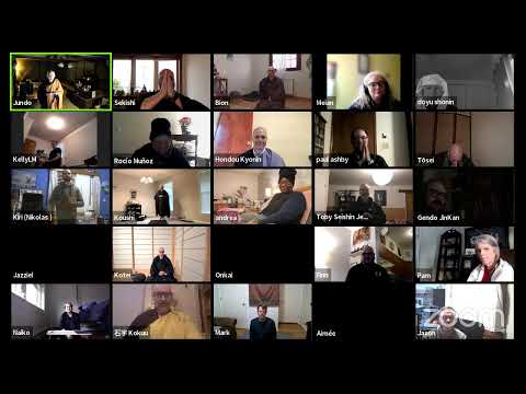 The sittings and other practice sesshions on Saturday and Sunday will be guided by a times by me (Jundo)from Japan and by all our Treeleaf Priests including Kyonin (from Mexico), Shokai (from Canada), Kokuu (in the UK), Shugen, Sekishi, Jinkan, Byokan, Jakuden, Shoka, Geika, Shinshi and Jinkan, Nengei, Koushi and Onkai (from the USA), Washin (in Ukraine), and Kotei (from Germany), some live and some behind the scenes. Because of time zones and other circumstance, some portions may need to be pre-recorded. All other portions will be live.